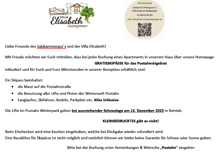 Mit dem Auto erreichen Sie in nur kurzer Zeit den Winterpark Postalm. Das familienfreundliche Schigebiet ermöglicht Ihnen zahlreiche Winteraktivitäten. Ob Skifahren, Rodeln, Langlaufen, Touren gehen oder Schneehschuhwandern…..